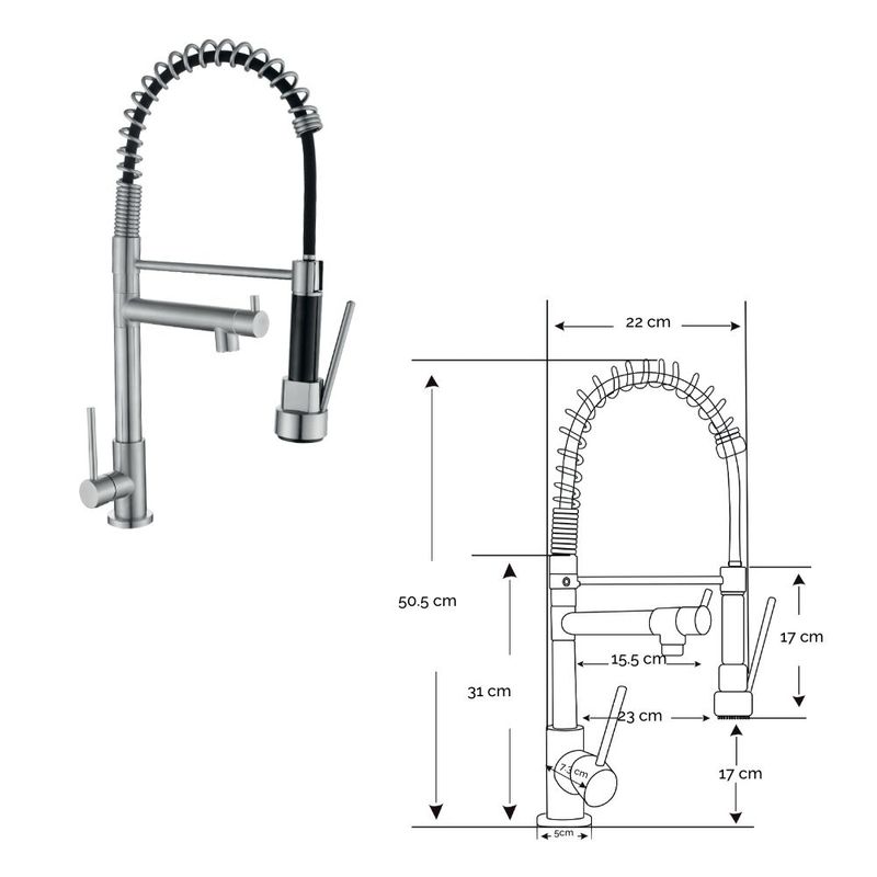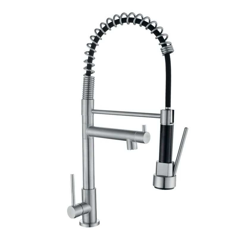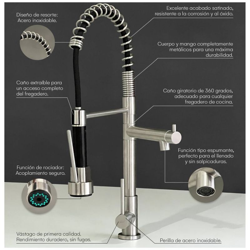Grifería de Cocina Profesional Satinada con Pico Flexible y Extraíble