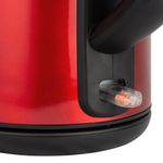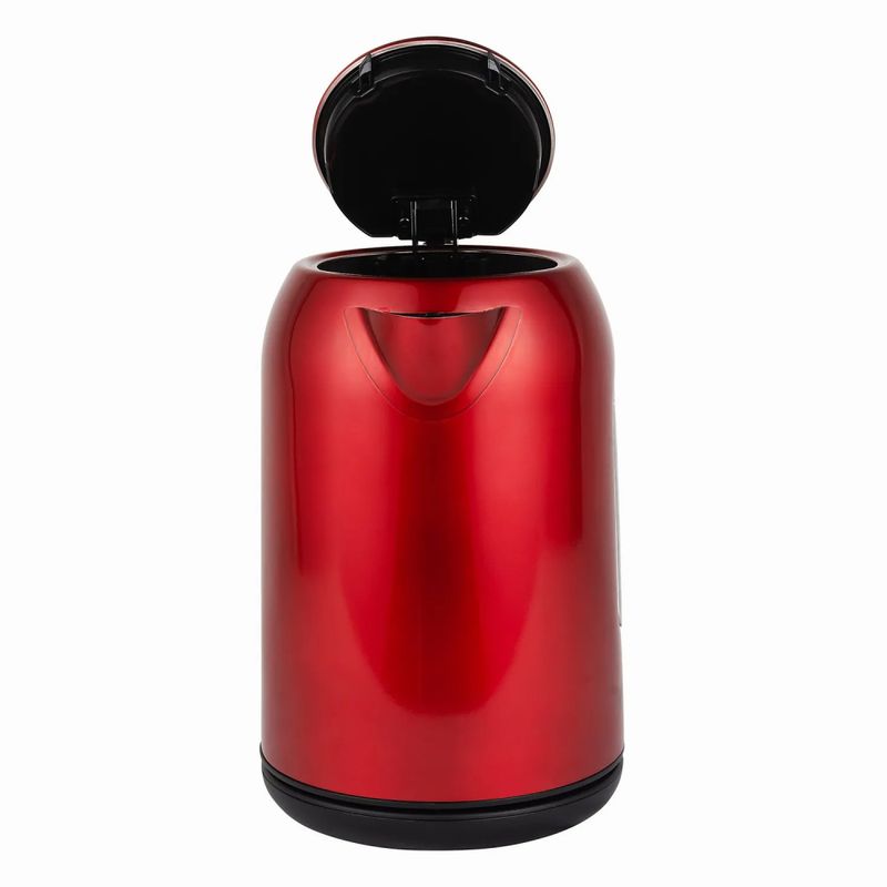 Está fabricado con acero inoxidable, lo que le da durabilidad al cuerpo y un acabado elegante en color rojo. Cuenta con una base inalámbrica giratoria de 360°, lo que facilita coger el hervidor desde cualquier ángulo sin enredos de cable. Incluye botón para apertura de la tapa, tapa amplia para fácil llenado, resistencia protegida para mayor duración, mango ergonómico resistente al calor, indicador transparente de nivel de agua para ver cuánto líquido queda, y filtro lavable en la boquilla.