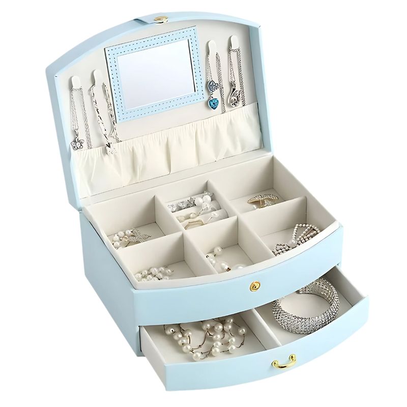 Joyero De 2 Niveles Con Espejo Modelo M8 Celeste