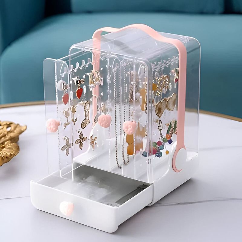 Descubre la combinación perfecta de elegancia y funcionalidad con nuestro Organizador de Joyas de 4 Divisiones con Asa. Este joyero exhibidor es la elección ideal para mantener tus aretes, collares, anillos y pulseras organizados de manera impecable. Con su asa, es fácil de transportar, convirtiéndolo en el compañero perfecto para tus viajes o para exhibir tus joyas de forma elegante.