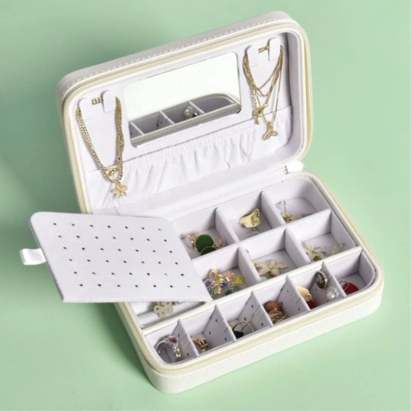 Lleva contigo la elegancia y la organización en tus viajes con nuestro Joyero Organizador Portátil. Este ingenioso compañero de viaje no solo resguarda tus joyas de manera segura, sino que también te brinda un toque de estilo dondequiera que vayas. Diseñado para la comodidad y la protección, este joyero portátil es imprescindible para quienes buscan mantener sus accesorios impecables mientras están en movimiento.