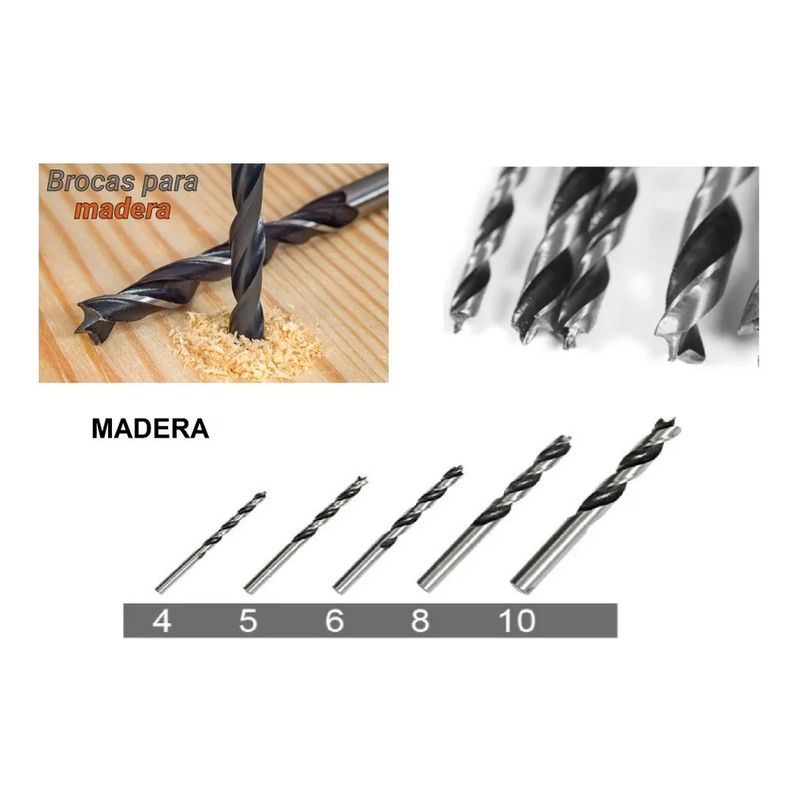 Brocas para Madera:3 mm,4 mm,5 mm,6 mm,8 mm,10 mm