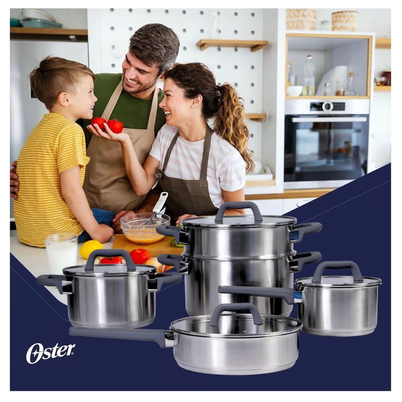 Juego de Ollas 9 piezas Acero inoxidable Oster Beauford acabado plata