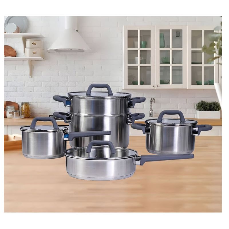 Juego de Ollas 9 piezas Acero inoxidable Oster Beauford acabado plata