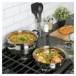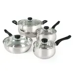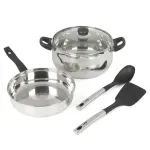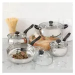 El set de Ollas y Sartenes Oster Rametto de acero inoxidable de larga duración, contiene 8pz de las cuales son 2 cacerolas, un sartén para saltear y una olla de 6.6lt, cada uno con su tapa de cristal resistente a altas temperaturas. Destacan por su forma y diseño acampanado, perillas y mangos ergonómicos de baquelita, los cuales permanecen fríos para evitar accidentes. Tapas de vidrio templado con ventilación de vapor. La sartén duradera y de calidad, la olla de 6.6lt y las dos cacerolas tienen un tamaño generoso para disfrutar durante años de la cocina. La marca Oster, promete rendimiento, versatilidad y durabilidad. Un producto innovador para el hogar, fabricado de acuerdo con los más altos estándares de calidad y eficiencia para hacerles la vida más fácil, saludable y placentera. Un motivo más para compartir en familia con el respaldo de la marca Oster que cuenta con 95 años de experiencia e innovación de productos para el hogar.