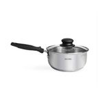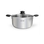 Juego de 6 piezas de Acero Inoxidable (Cacerola N° 16 / Olla N°20 / Olla N°24 Acabado exterior, pulido en espejo Accesorios de baquelita Tapa de vidrio templado Espesor 0.5mm. Compatibles para cocinas colocar los iconos