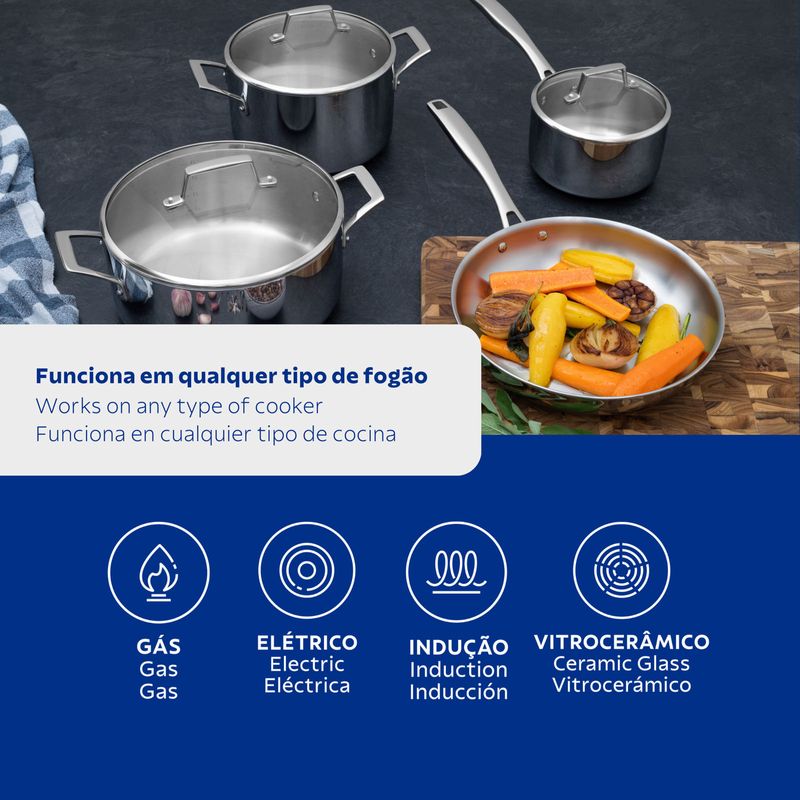 ¡La batería Tramontina Grano Glass de acero inoxidable con cuerpo triple y tapa de vidrio 4 piezas, hará que su experiencia en la cocina sea aún más especial! Sus piezas están hechas de acero inoxidable con cuerpo triple (acero inoxidable + aluminio + acero inoxidable), característica que ayuda en la distribución del calor de manera uniforme y proporciona una cocción más rápida de los alimentos. Las ollas poseen un diseño moderno con terminación brillante. Además, las ollas son altamente resistentes y durables, fáciles de limpiar y se pueden lavar en el lavavajillas diariamente. ¡La elección perfecta para preparar todas sus comidas!