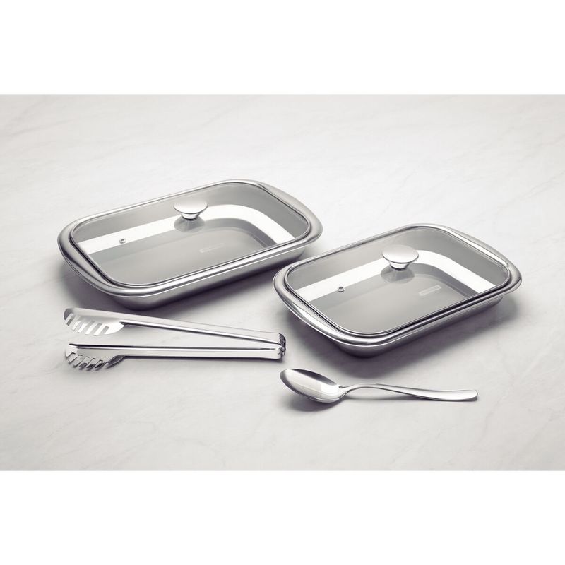 ¡Servir es hacer feliz al otro! Con el juego para hornear y servir Cosmos de acero inoxidable con tapa de vidrio de 4 piezas, de la línea Cosmos, garantiza un diseño moderno y refinamiento al componer la mesa. ¡Es el placer de embellecer! Ideal para hornear y servir. Las piezas hechas de acero inoxidable mantienen sus características originales, conservando la belleza, higiene y durabilidad del material. ¡Nada mejor que su mesa con deliciosas comidas en abundancia y elegancia!