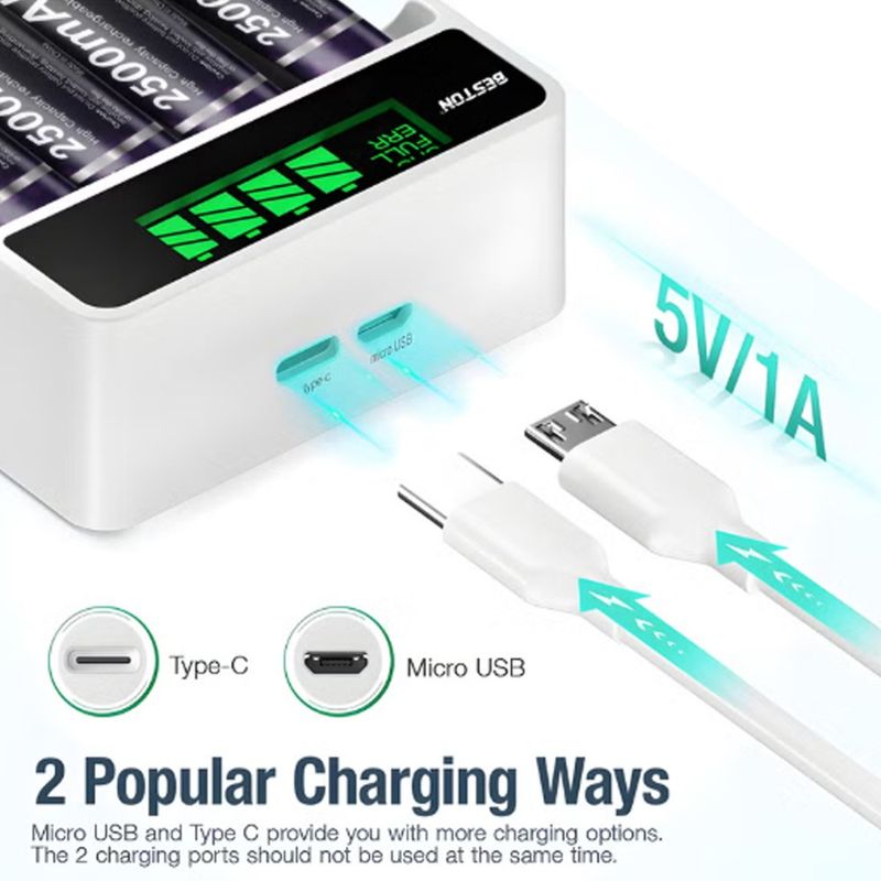 Kit Cargador Inteligente de Pilas con Pantalla LCD 4 puestos + 4 pilas AA Ni-MH