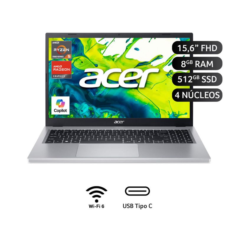 TecnologiaComputoLaptopsLaptop Acer AG15-21P-R70Y R5-7520U 8GB 512GB