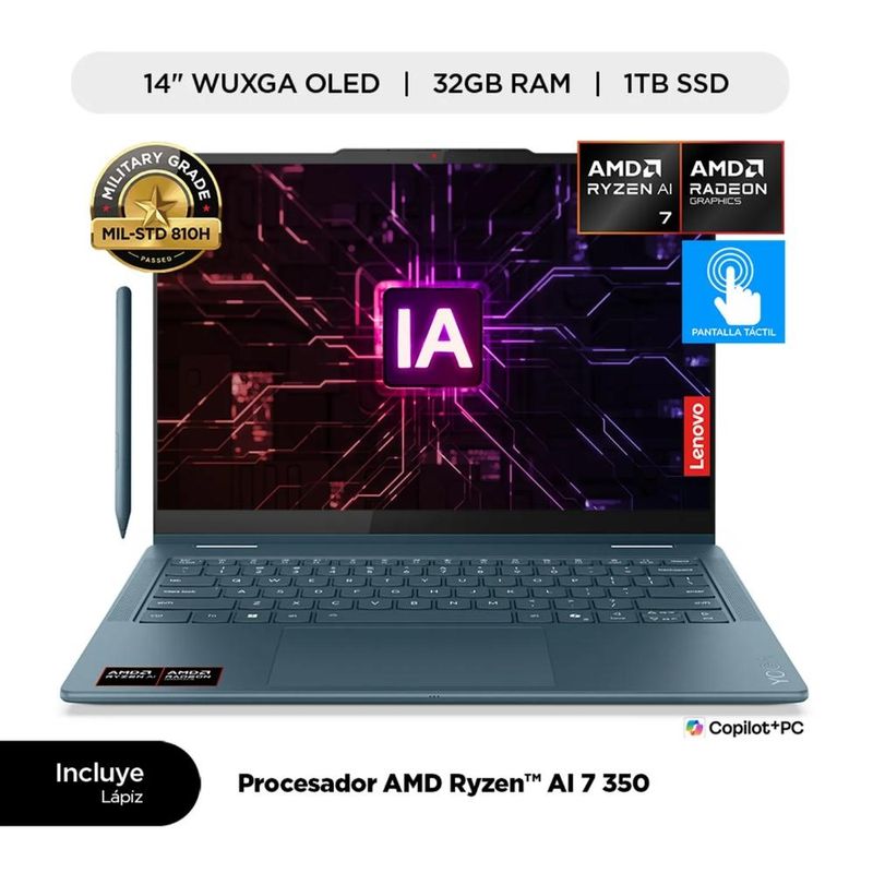 La laptop Lenovo Yoga 7 2 en 1 14" táctil Windows 11 AMD Ryzen 7 32GB 1TB combina potencia y versatilidad en un diseño premium. Su pantalla táctil giratoria permite usarla como laptop o tablet, mientras que el procesador Ryzen 7 asegura un rendimiento superior. Con 32GB de RAM y 1TB de almacenamiento, es ideal para productividad, creatividad y entretenimiento sin límites. ¡No lo pienses más y aprovecha esta oportunidad!