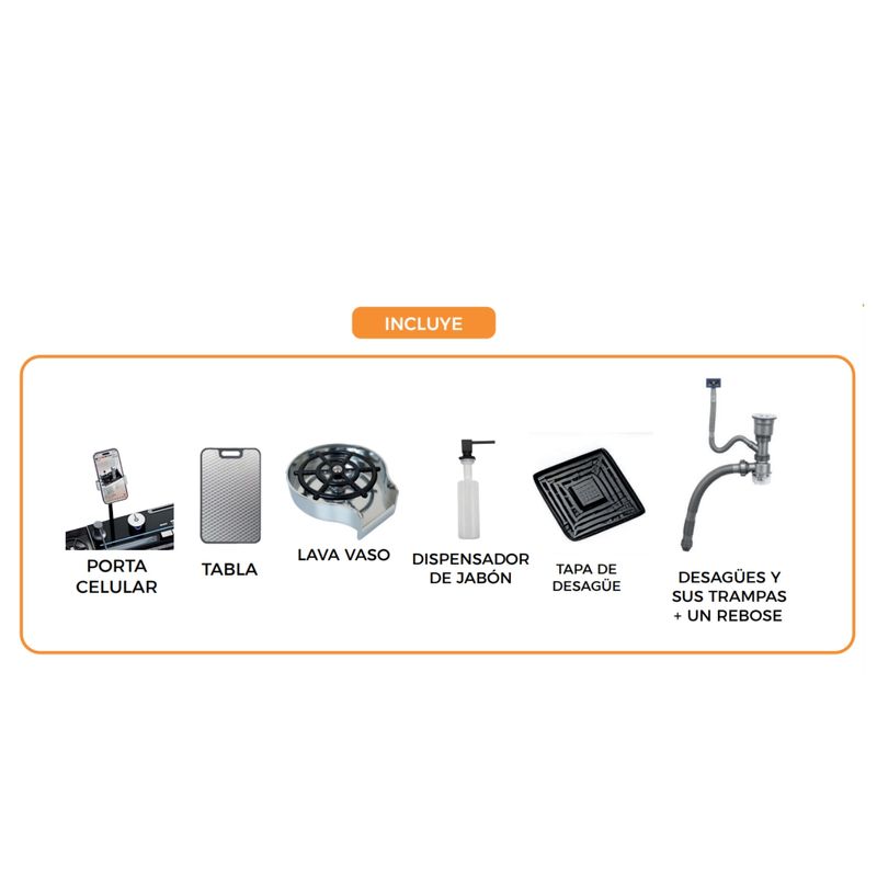 Eleva el estilo y la funcionalidad de tu cocina con el fregadero Máncora-6845. Diseñado en un elegante acabado Black y fabricado con materiales de alta resistencia, este modelo es la combinación perfecta entre modernidad y practicidad. Su diseño integrado permite optimizar el espacio de trabajo con accesorios exclusivos.