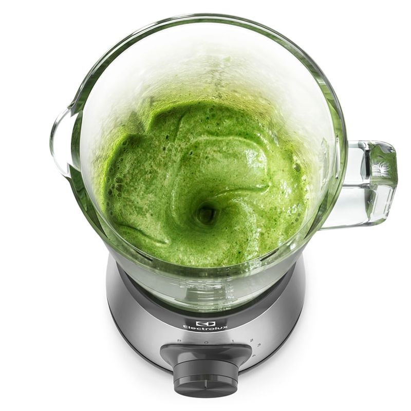 La Licuadora con jarra de vidrio Electrolux tiene una capacidad útil de 1,5L y no se decolora ni absorbe olores. Su acabado en acero inoxidable combina sofisticación y durabilidad para tu cocina. Con 5 velocidades diferentes y función Pulsar, puedes lograr texturas ideales para muchas de tus recetas.