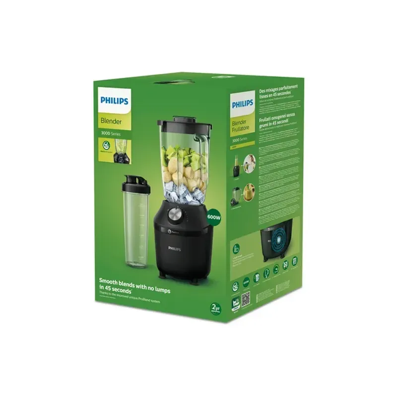 ¿Buscas la mejor licuadora para tu hogar? Con la nueva Philips podrás picar cubos de hielo en trozos finos en apenas 45 segundos. Cuenta con 2 posiciones de velocidad + función Pulse para elegir. Jarra grande del tamaño perfecto para las necesidades de su familia. Además, puedes descargar la aplicación HomeID para favoritos familiares saludables y sabrosos. Le sumamos sus cuchillas de acero inoxidable duraderas que te darán un mejor resultado. ¿Que esperas?