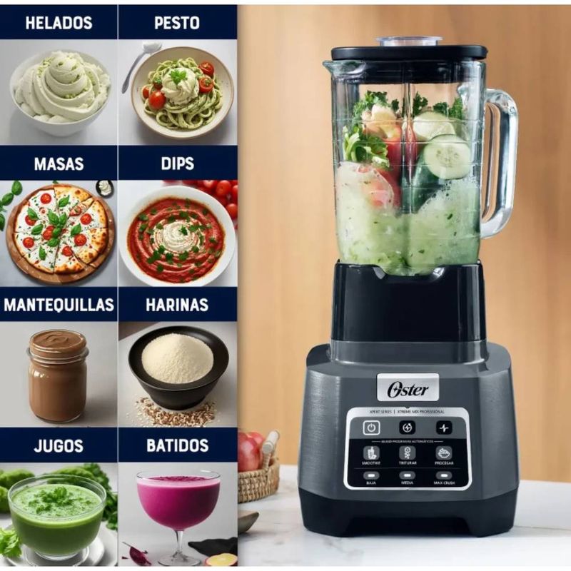 La licuadora profesional Xtreme Mix es la herramienta perfecta para quienes buscan potencia, innovación y resultados consistentes en la cocina. Gracias a su tecnología reversible, las cuchillas giran en ambas direcciones para lograr mezclas más homogéneas, evitando atascos y garantizando texturas suaves en todo tipo de preparaciones.