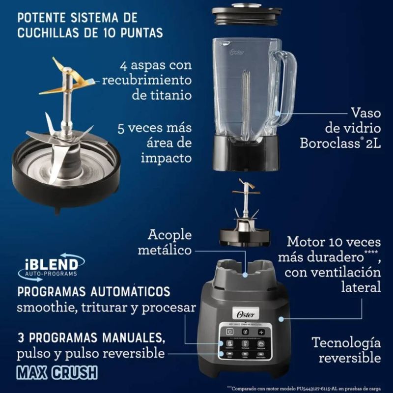 Equipada con un motor de alto rendimiento, vaso de gran capacidad y cuchillas de acero inoxidable ultra resistentes, esta licuadora está diseñada para soportar un uso intensivo. Ideal para preparar batidos, cremas, jugos, salsas y recetas profesionales con la máxima eficiencia.
