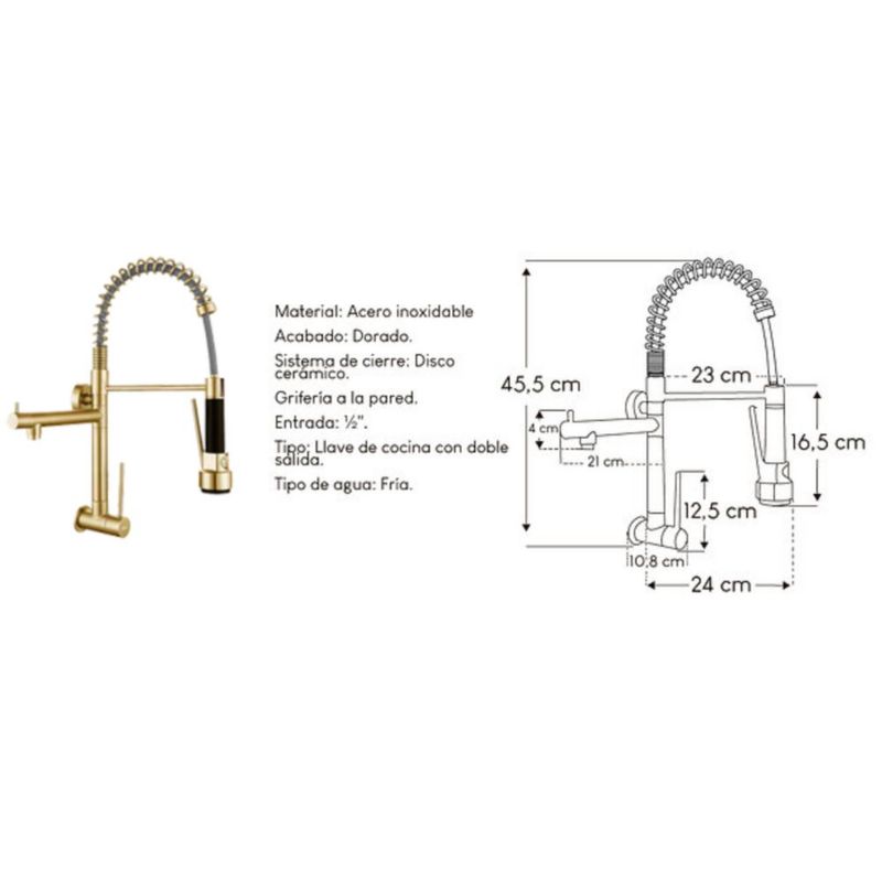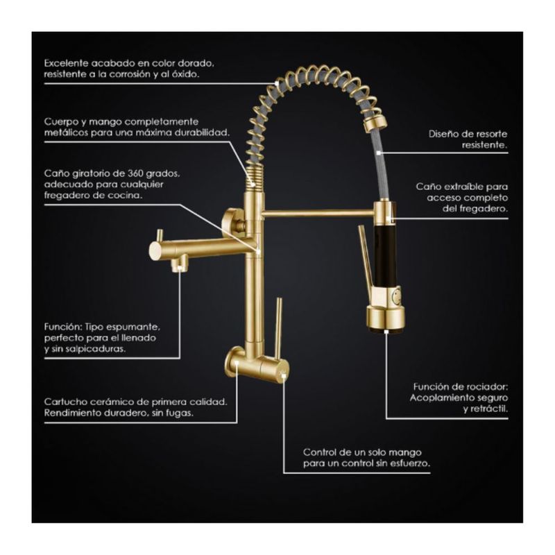Pero eso no es todo, esta llave de cocina cuenta con una característica adicional: ¡doble salida de agua! Esto te brinda aún más versatilidad y comodidad en tus tareas diarias en la cocina.