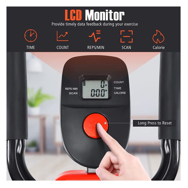 La computadora LCD de alta velocidad le actualiza las calorías quemadas, el tiempo y los movimientos por minuto. Elija entre niveles de resistencia para aumentar gradualmente la intensidad de sus sesiones de entrenamiento.