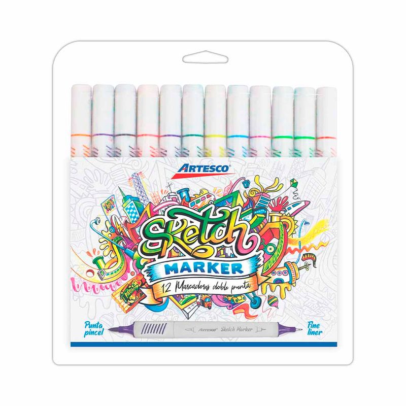 Marcadores Doble Punta ARTESCO Sketch Marker Estuche 12un