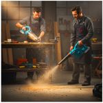 Poder de la Sopladora: A diferencia de las sopladoras pequeñas, este modelo tiene un diseño de turbina que mueve un volumen de aire considerable ($8.5 m^3/min$), lo que permite barrer un taller o un jardín pequeño en minutos. Es ideal para limpiar el aserrín, polvo de construcción o restos de poda.