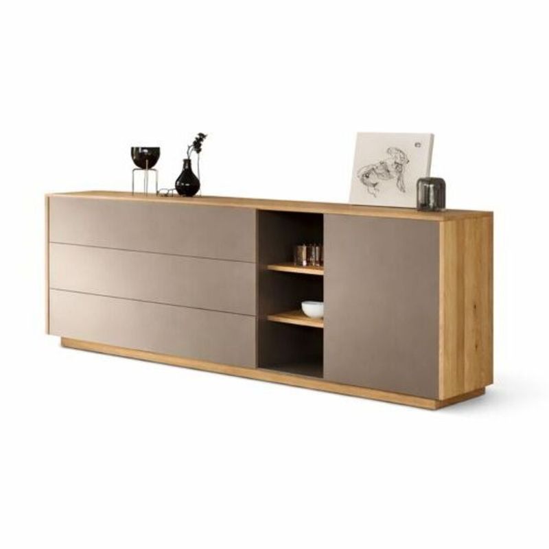 Este mueble en tonos Taupe y Duna combina líneas limpias con una presencia sólida, ideal para salas y comedores de estilo moderno. El canto grueso refuerza el diseño, aportando un acabado más robusto y una sensación de mayor calidad visual, sin perder elegancia ni sobriedad.