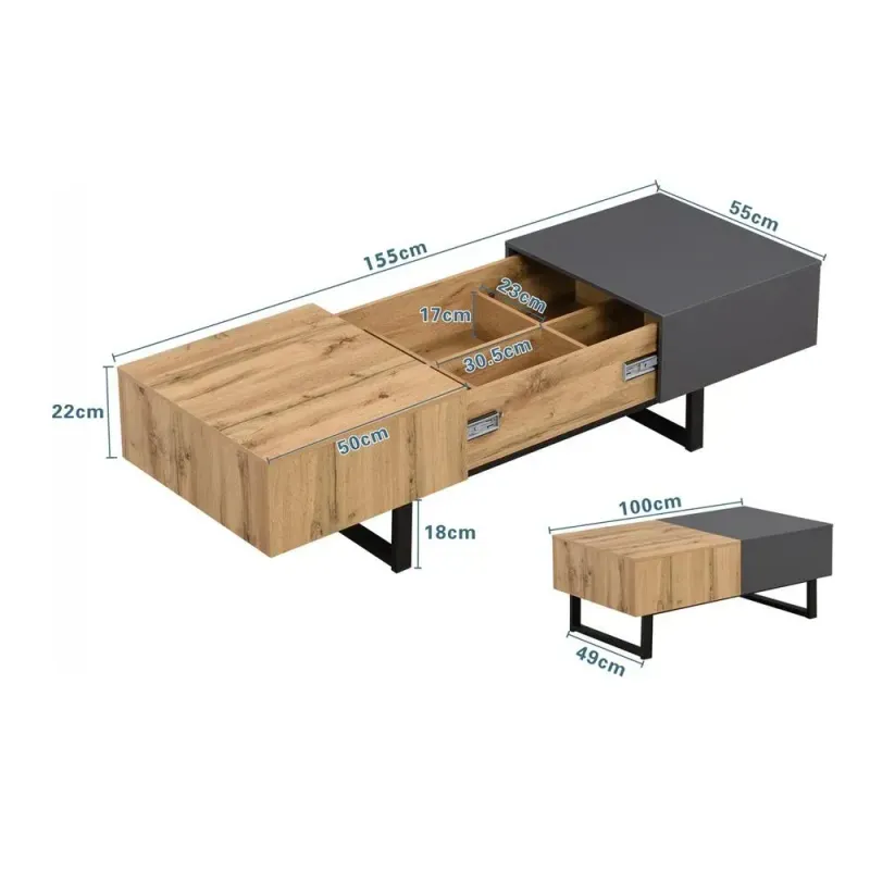 Mesa Moderna de Centro TU MESITA Lenin color Negro/Marrón 2 cajones