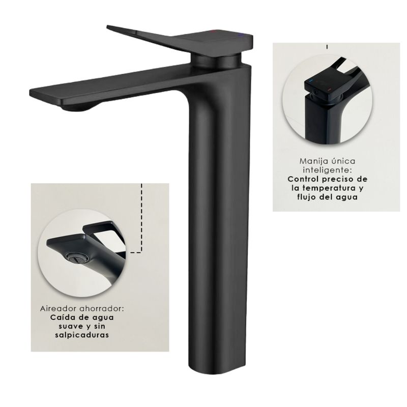 Agrega un toque moderno y elegante a tu baño con esta mezcladora monocomando de lavabo fabricada en bronce con acabado negro mate. Su diseño minimalista combina estilo y funcionalidad, ideal para ambientes contemporáneos.