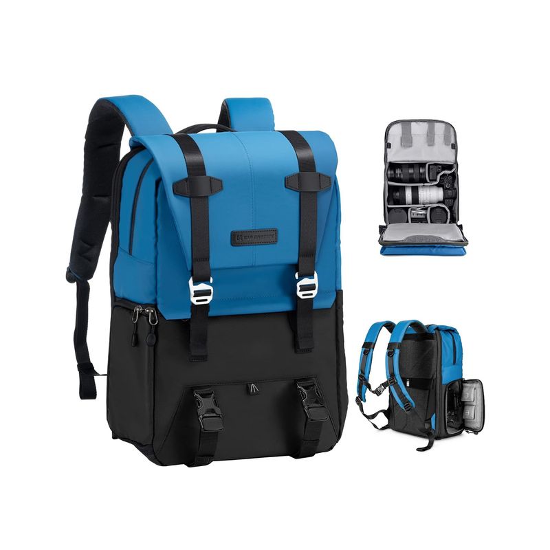 Esta mochila fotográfica Beta azul/negra de K&F Concept tiene una capacidad de 20 litros y está diseñada para guardar tu equipo fotográfico y otros accesorios.
