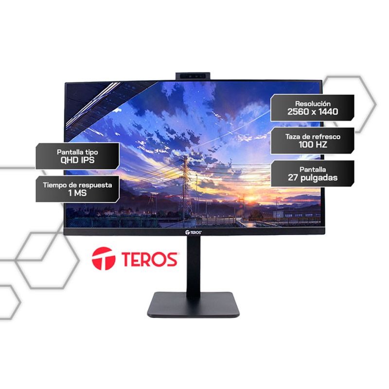 El monitor Teros TE 2715CS de 27 pulgadas de alto rendimiento, está pensado para trabajo, estudio y entretenimiento diario. Su resolución QHD 2560x1440 con panel IPS ofrece imágenes claras, colores vivos y amplios ángulos de visión.