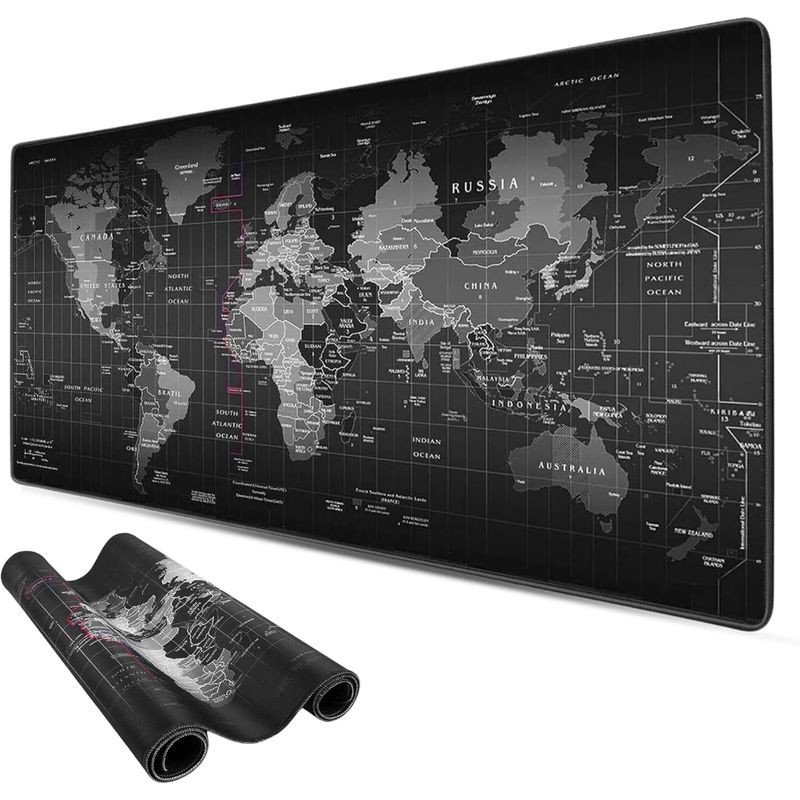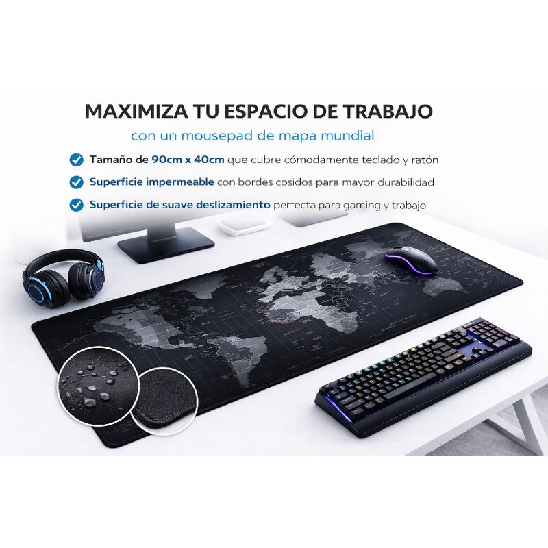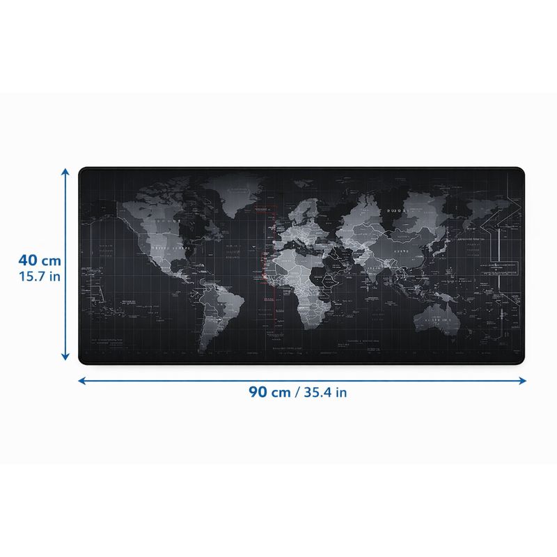 Mousepad/Desk Mat XXL 90×40 cm con diseño Mapa Mundial. Cubre teclado y mouse para un escritorio más cómodo y con estilo gamer. Superficie suave para mejor deslizamiento y base antideslizante para que no se mueva.