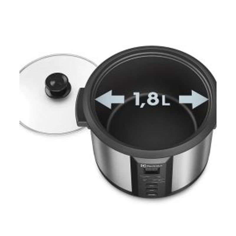 La olla ofrece capacidad de 1.8L, para preparar hasta 10 tazas y te permite servir grandes porciones. El tazón interior es antiadherente y extraíble, por lo que es más fácil de limpiar. El diseño moderno en acero inoxidable combina sofisticación y durabilidad.