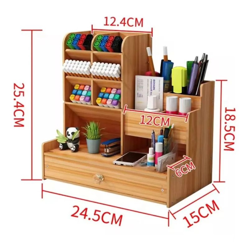El tamaño apropiado permite usarlo en cualquier escritorio. Suficientemente espacioso para almacenar artículos de escritorio como bolígrafos, lápices, marcadores, reglas, borrachas, clips de papel, tijeras, abrecartas y muchos otros accesorios de escritorio, también es ideal para almacenar pinceles de maquillaje, esmaltes de uñas, lápices labial y otros artículos personales pequeños. Puede poner cualquier otro artículo diario en el organizador.