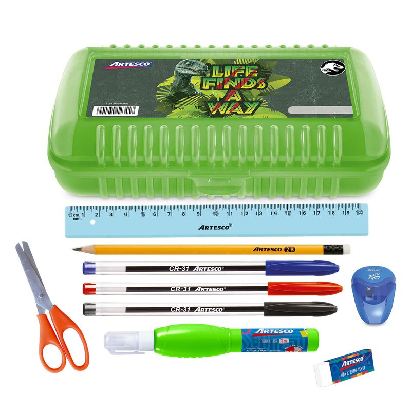 Pack Escolar Cartuchera Multibox Jurassic World + 9 Útiles