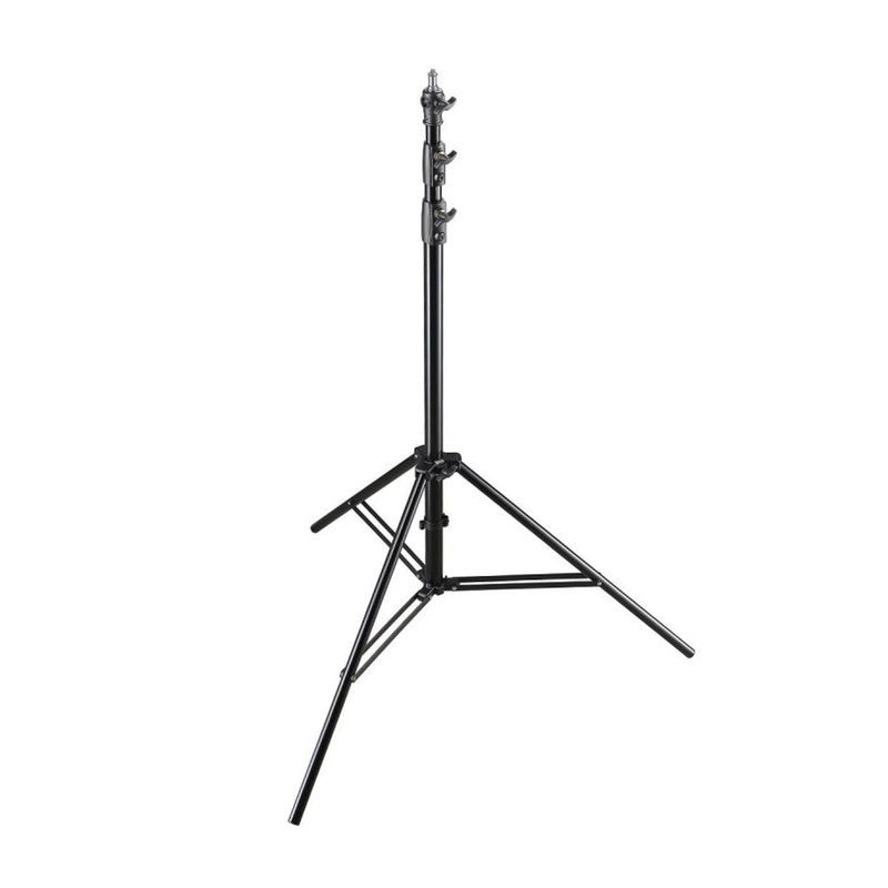 El Parante Godox 290F es un trípode heavy duty de aluminio negro que alcanza hasta 286–290 cm de altura y soporta aprox. 5 kg, ideal para flashes de estudio, luces LED y modificadores pesados. Cuenta con secciones firmes y seguros de ajuste para mayor estabilidad, patas robustas de amplia apertura y espiga estándar 1/4" y 3/8" compatible con la mayoría de equipos. Perfecto para uso profesional en estudio o producciones en locación