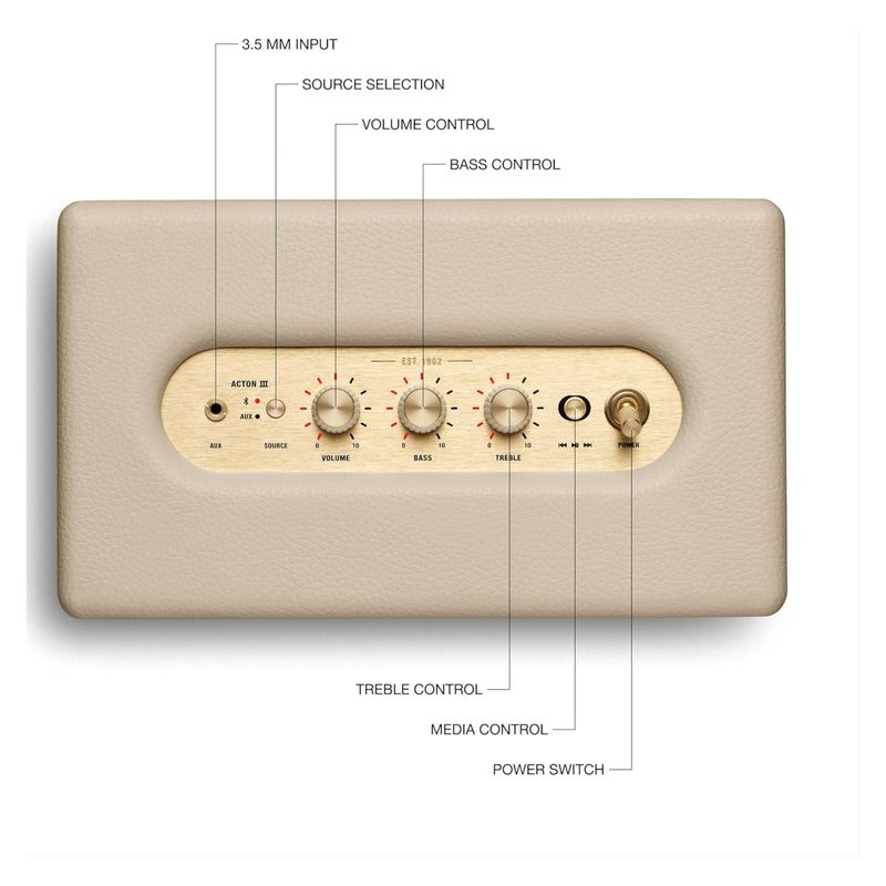 MARSHALL ACTON III - ALTAVOZ BLUETOOTH PARA EL HOGAR, SONIDO ESTÉREO FUERTE CON CONTROLES DE GRAVES Y AGUDOS, ALIMENTADO POR ENCHUFE, ENTRADA AUXILIAR DE 0.138 IN
