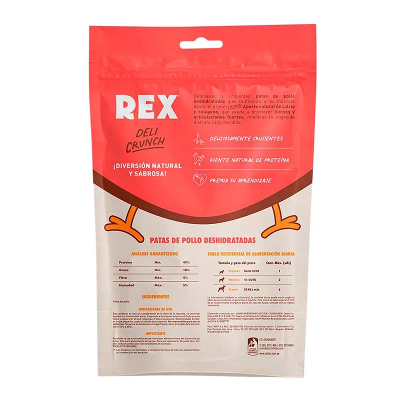 Patas de Pollo Deshidratadas Perro Rex Deli Crunch 130 g