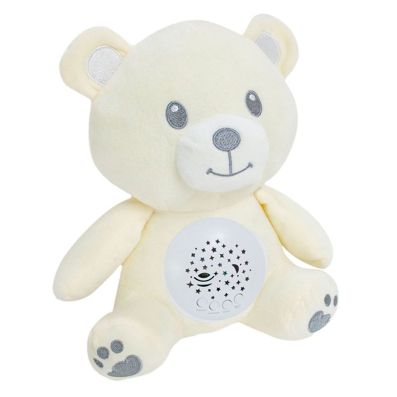 Dulces sueños con este tierno osito proyector. Acompaña a tu bebé con suaves luces, sonidos y melodías que llenan la habitación de un cielo estrellado multicolor. Es lavable, para siempre estar limpio y listo para abrazar. ¡el mejor amigo para noches mágicas y tranquilas!