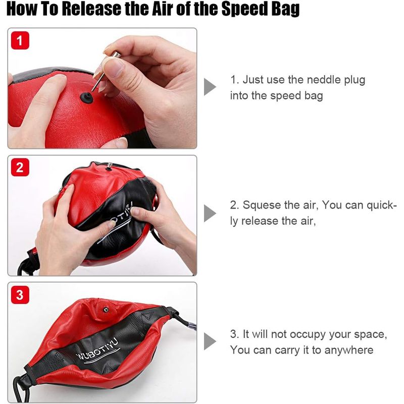 Bolsa de velocidad resistente - Hecho de material de cuero de PU. Balón de boxeo que adopta una hoja interior de goma, antifugas, diseño de boquilla de gas hermético, comodidad inflable. Es práctico. Nunca sobreinflar.