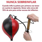 OBS. Nunca sobreinflar. La primera vez que infle la pelota o pera de box tener en cuenta lo siguiente, solo llene cerca al 70 % de aire para evitar exceso de inflacion. Evitar siempre sobreinflar.