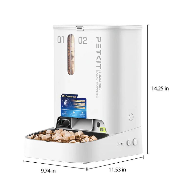 Alimenta a tu mascota de forma inteligente y mantente siempre cerca con el Comedero Automático PETKIT YumShare Dual-Hopper 2 con Cámara, diseñado para control total y tranquilidad diaria.