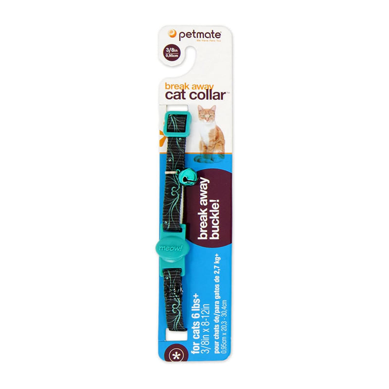 Los felinos a la moda se verán geniales con estos diseños de collares ajustables para gatos de Petmate®. ¡Las hebillas "Miau" de colores coordinados y los cascabeles dan a estos collares un estilo y una personalidad únicos que solo se pueden combinar con los gatos que los usan! Diseñado de forma duradera con correas de nailon y se ajusta fácilmente para adaptarse a casi cualquier gato. Ya sea que el gato salga o solo esté adentro, este collar separable combina comodidad y seguridad para todos los gatos. Las características incluyen correas de nailon de alta calidad, herrajes de plástico resistente con bordes suavemente contorneados, una campana de seguridad plateada extraíble y una hebilla separable de liberación rápida patentada que se engancha fácilmente y se mantiene segura, pero se suelta fácilmente si se tira del collar. CARACTERÍSTICAS Dimensiones: ancho 0,95 cm, largo ajustable 20,3 cm - 30,4 cm Para gatos de 2,7 kg de peso. Se ajusta fácilmente para adaptarse a gatos de todos los tamaños. Hebilla separable patentada que se libera fácilmente si su gato se enreda Seguro para uso en interiores y exteriores. Hecho de nailon de alta calidad. No lo use con correa o amarre.