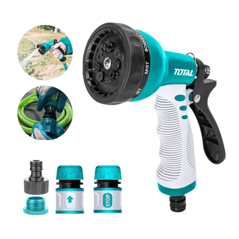 Pistola de riego 9 funciones con conectores rápidos click TOTAL