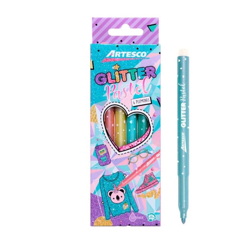 • PLUMONES ARTESCO GLITTER PASTEL ESTUCH X6UND
