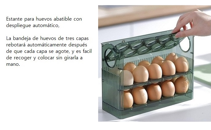 La bandeja de huevos de tres capas contiene 30 ranuras para 30 huevos, esta echo para agilizar el trabajo en casa ya que es fácil de usar.