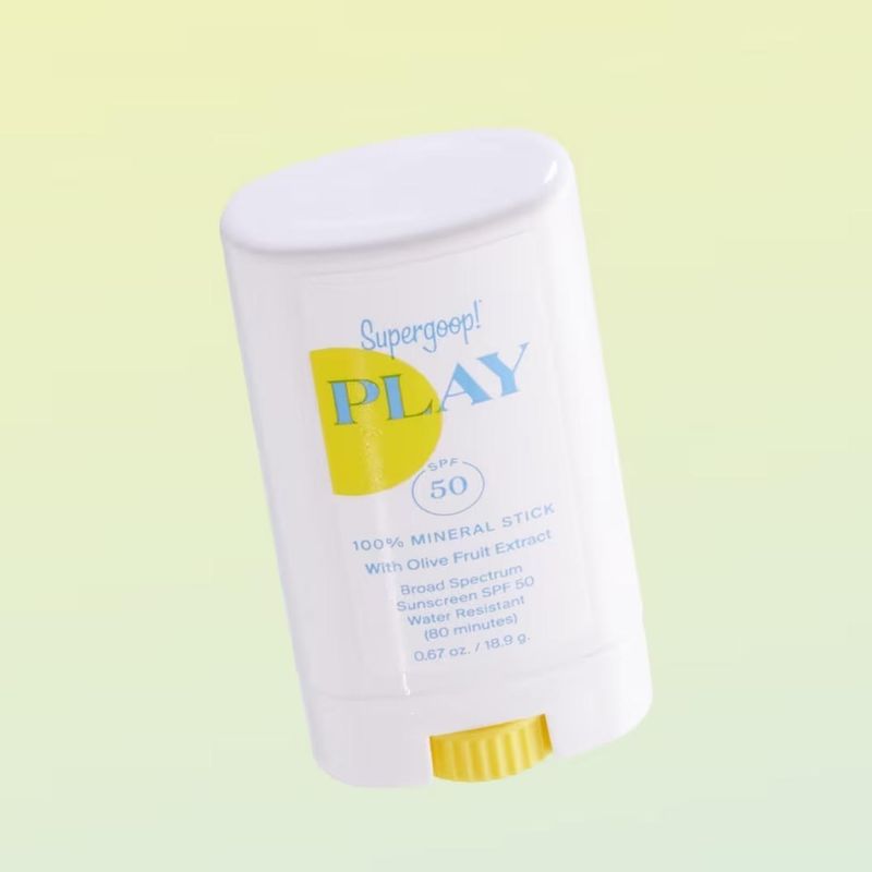 El protector solar en barra Supergoop PLAY 100% mineral SPF 50 está elaborado con extracto de oliva y es perfecto para tu rostro, orejas y labios.