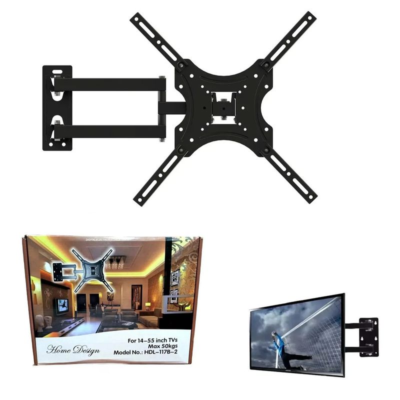 Rack Soporte de TV Movible para Pantallas De 14 a 55 pulgadas, Soporte de Pared para Monitores LCD, LED y OLED, Articulado Inclinable Sólido y Confiable.
