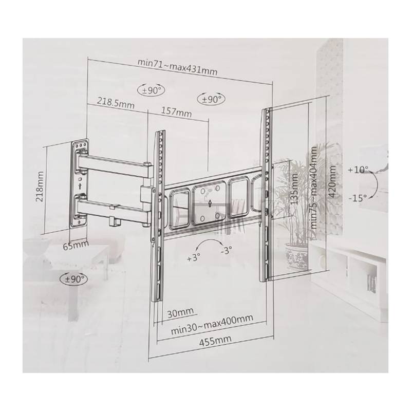 Brinda ditanciaynbsp;mini. 7.1cm - max. 43.1cmynbsp;de la pared y es ideal para Tv con Vesa de (7.5 x 7.5 cm, 10 x 10 cm, 10 x 15 cm, 10 x 20 cm, 15 x 10 cm, 15 x 15 cm, 20 x 10 cm, 20 x 20 cm, 30 x 20 cm, 30 x 30 cm, 40 x 20 cm, 40 x 30 cm, 40 x 40 cm)