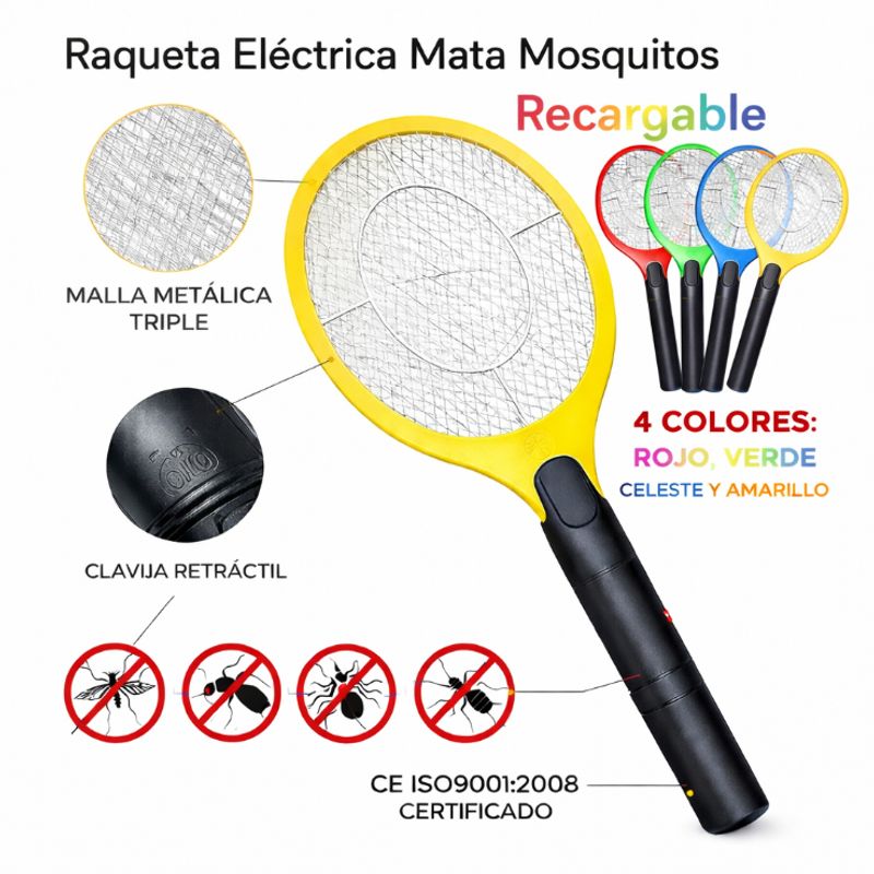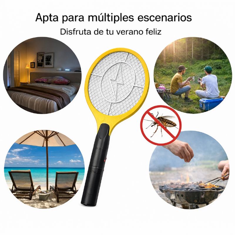 Elimina mosquitos, moscas y zancudos al instante con esta práctica raqueta eléctrica recargable. Incorpora enchufe directo a la pared, por lo que no necesita pilas ni cables USB. Más cómoda, económica y lista para usar en cualquier momento.