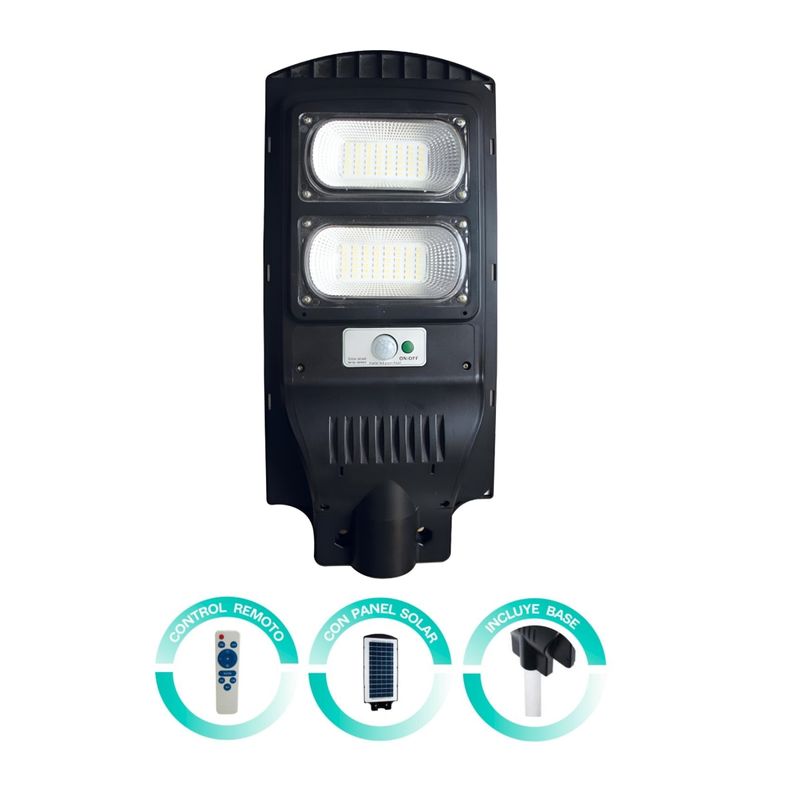 Ilumina espacios exteriores con este potente reflector solar de 120W, ideal para bodegas, patios, jardines o zonas remotas. Funciona con energía solar, incluye sensor de movimiento que activa la luz al detectar actividad, junto con base de instalación y control remoto para mayor comodidad. Tiene una temperatura de color muy brillante de 10 000K, perfecta para seguridad nocturna. Incluye panel solar integrado que lo hace autosuficiente, sin necesidad de conexión eléctrica