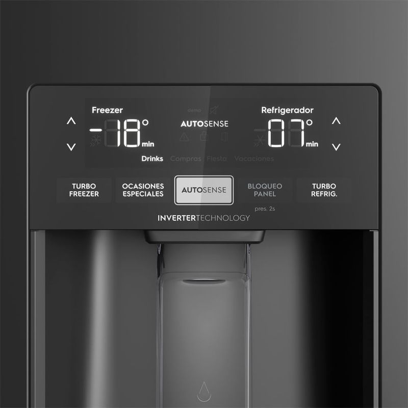 -Panel digital con modo especial: Controla la temperatura en el refrigerador, funciones de Turbo Refrigerador, Turbo Congelador y Bloqueo del Panel. Modo especial para las funciones de Vacaciones, Compras, Fiesta y Bebidas.